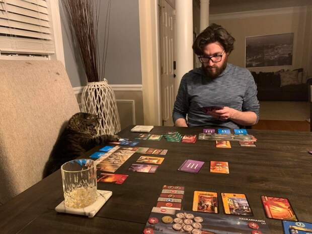 Реддитор решил не недооценивать своего кота и сыграть с ним в настолки. Кот — отличная компания! Особенно в период карантина.