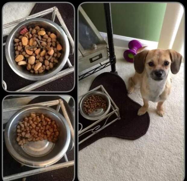 8. Его хозяин смешал полезную еду со вкусной, но этого пса не перехитрить.