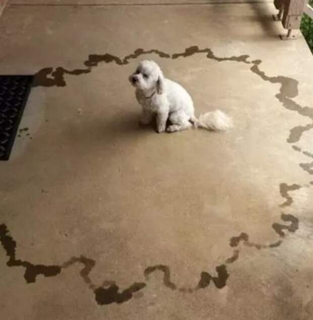15. «Мой пес сбежал из дому и заставил меня искать его больше часа, только ради того, чтобы вернувшись я увидел это».