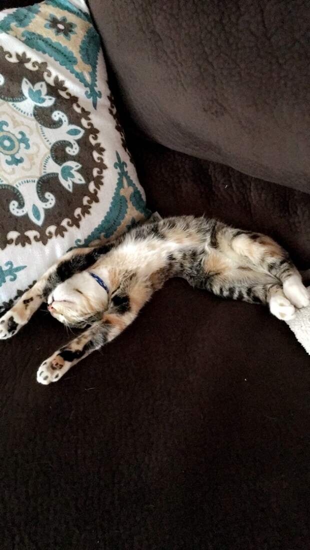 9. «Я услышала плач этого котенка на улице. Несмотря на то что у малышки был микрочип, найти прежних владельцев не удалось. Я оставила ее себе и надела ошейник с колокольчиком, чтобы она больше не терялась»