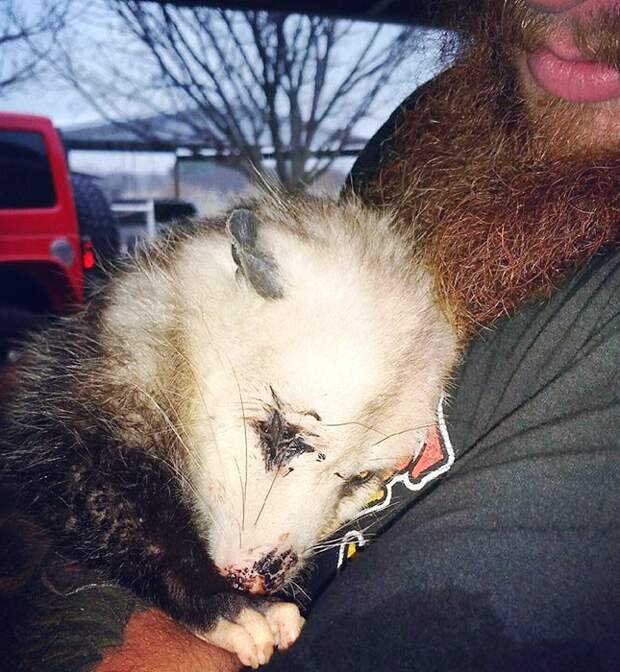 Оказалось, это была беременная самка опоссума, а жизни ее чуть не лишил выстрел из пневматического оружия.